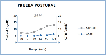 Figura 2A. Respuesta de cortisol y ACTH en la prueba postural.