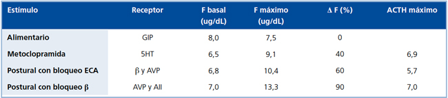En los últimos años diversos grupos han identificado mecanismos fisiopatológicos que explican el hipercortisolismo en HSMIA. En estos casos la expresión aberrante de diferentes receptores de membrana en la corteza suprarrenal permite que la unión de sus ligandos estimule la esteroidogénesis a través de la misma cascada en que actúa ACTH1,2. De este modo, la secreción de cortisol es regulada también, por otras hormonas distintas de ACTH, ya sea mediante la estimulación de receptores ectópicos (no presentes normalmente en la glándula suprarrenal) o de receptores eutópicos (expresados normalmente en escasa cantidad), sin relación con la esteroidogénesis. Hasta este momento se ha estudiado la expresión aberrante de receptores para GIP, NA, AII, AVP, 5HT y LH (3-5). La estimulación de estos receptores mediante ligandos endógenos escapa al mecanismo de retroalimentación normal de ACTH. Si bien se ha aclarado el mecanismo fisiopatológico, aún no se sabe la etiología inicial que desencadena esta alteración6.