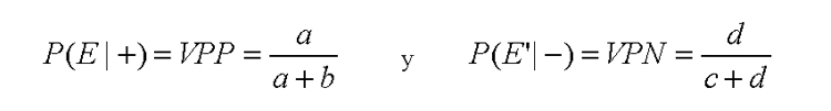 Desde el punto de vista de la utilidad clínica, para el pronóstico, es de suma importancia estimar la probabilidad de desarrollar la enfermedad dado el hecho de obtener un examen positivo, y, de no desarrollar la enfermedad dado el hecho de obtener un examen negativo; estas probabilidades reciben el nombre de VALOR PREDICTIVO POSITIVO (VPP) y VALOR PREDICTIVO NEGATIVO (VPN), respectivamente. De la Tabla 2 se obtiene: