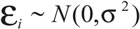 El supuesto anterior es equivalente a decir que los errores o residuos de la estimación siguen una distribución normal, cuya esperanza es 0 y su varianza es σ2, es decir: