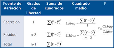 La descomposición de la variabilidad es posible resumirla en la conocida Tabla de Análisis de la Varianza (Tabla ANOVA)