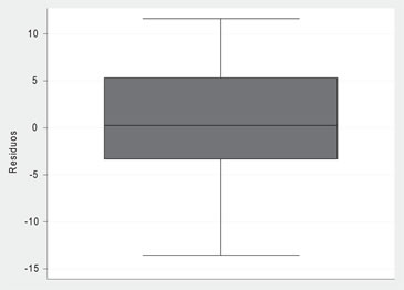 También podemos usar el test de herocedasticidad de Breusch-Pagan o Cook-Weisberg, cuya hipótesis nula es que la varianza de los residuos es constante, que en este caso entrega un p-value = 0,3269.