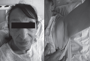 Figura 1. Fotografías facial y axilar, destacando la facies hipogonádica