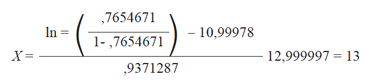 Si se ha escogido como punto de corte 0.7654671 el punto de corte para la variable original, X, se obtiene despejando su valor de la ecuación: