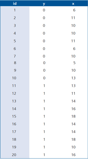 Observemos el siguiente ejemplo: Supongamos que la variable X discrimina dos poblaciones, disponemos de 10 valores para la población "1" y 10 valores para la población "0", los datos son los siguientes:
