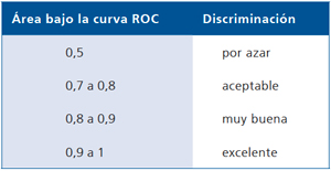 Según Hosmer y Lemeshow ("Applied Logistic Regression" Second Edition, p. 162), la capacidad de discriminación puede clasificarse según: