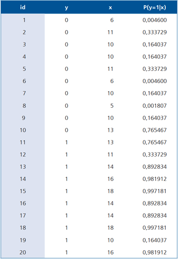Así, dado un perfil X, la idea es determinar si la estimación de probabilidad hecha por la distribución logística está cerca del 0 o cerca del 1. Esta decisión es posible tomarla si se escoge un punto de corte, "p" para la probabilidad estimada, de modo que si P(Y = 1˧ |Xβ) > p, el sujeto será clasificado en la población "1", de lo contrario el sujeto será clasificado en la población "0". Con esta conceptualización, si la población de interés (enfermos, muertes, mejorías…) la llamamos "A" y la codificamos con "1", definimos: