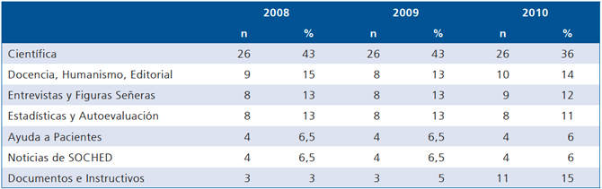 Comparación anual de áreas temáticas de la Revista Chilena de Endocrinología y Diabetes