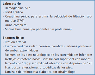 Tabla 2. Estudio y evaluación necesaria para estimar complicaciones crónicas derivadas de la microangiopatía en pacientes con diabetes mellitus