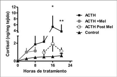 Figura 2. Efecto directo de melatonina sobre la producción de cortisol
