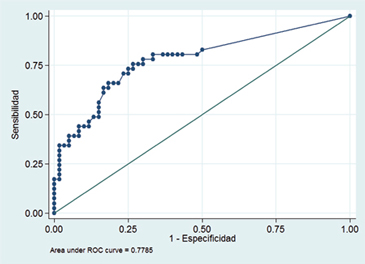 Mediante curvas ROC se determinó la sensibilidad y especificidad de los distintos valores de LH basal para diagnosticar la activación del eje HHG, observándose un área bajo la curva de 77,85%. áreas sobre el 75% se consideran de buena discriminación (Figura 2).