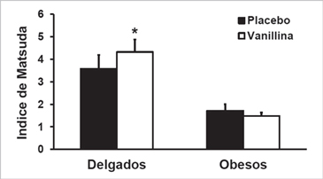 La ingesta aguda de 600 mg de vanillina mostró un modesto aunque significativo efecto atenuador de la RI. Esto fue evidente sólo en delgados, mientras que en obesos, a pesar de su mayor grado de RI, estrés oxidativo e inflamación no hubo modificaciones en este parámetro. Los cambios en el grado de RI inducidos por la vanillina no fueron acompañados por cambios en el estado oxidativo e inflamatorio, al menos en los indicadores utilizados en este estudio.