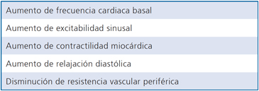 Los efectos hemodinámicos de T3 se encuentran enumerados en la Tabla 1. En estados hipertiroideos, estos efectos tienen como resultado el aumento del gasto cardiaco, del consumo de oxígeno miocárdico y del riesgo de aparición de arritmias sinusales7.