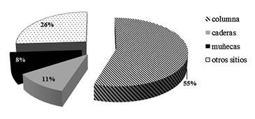 Figura 2. Sitios de fractura por fragilidad en varones.
