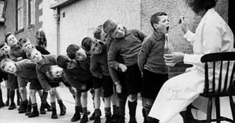 Figura 3: 1940, niños alimentados con aceite de hígado de bacalao.Referencias