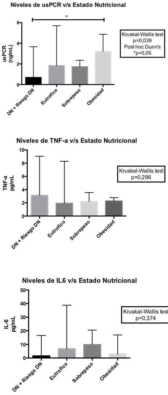 Figura 1: Asociación entre marcadores de inflamación según estado nutricional en pacientes con DM1.