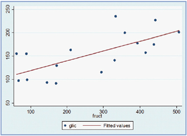 Figura 4. Correlación entre glicemias promedio y fructosamina en los pacientes.