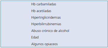 Se ha observado, que condiciones fisiológicas, como el embarazo5, y patológicas en las cuales se alteran las características de la hemoglobina o la vida media de los glóbulos rojos, la correlación de HbA1c con los niveles glicémicos puede verse alterada. En individuos portadores de variaciones de la hemoglobina en sus cadenas S o C, se han reportado valores altos o bajos de HbA1c6. Condiciones que afectan la vida media de los glóbulos rojos al disminuir el período de tiempo de exposición a la glicosilación, el porcentaje de HbA1c puede ser menor que la esperada. Esta situación se ha descrito en la anemia hemolítica, enfermedades hepáticas y en período de recuperación de pérdidas significativas de sangre. También se ha observado durante el tratamiento con eritropoyetina7. En condiciones que se prolonga la vida media, como en la anemia ferropénica o la anemia aplástica8, puede estar la HbA1c más alta que lo real. Se puede ver afectada por la exposición a substancias químicas, concentraciones altas de urea9 y salicilatos10, que alteran la hemoglobina, dando resultados mayores que los reales.