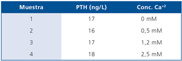 Valores menores a 20 son considerados negativos, por lo que se deduce que no fue posible medir secreción de PTH mediante este sistema.