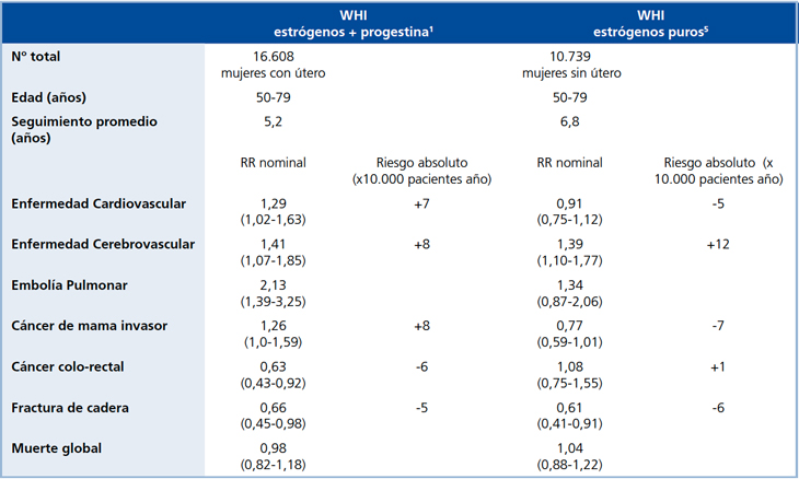 A pesar de las serias críticas al diseño y ejecución del estudio WHI, en especial por haber incorporado mujeres añosas que no son el objetivo primario de la TH, sus resultados han sido ampliamente difundidos, y también criticados. El impacto del estudio WHI fue devastador para la terapia hormonal de la postmenopausia. De una época pre WHI de gran optimismo por los múltiples beneficios asociados a TH, se pasó a un abandono generalizado de la terapia por miedo a sus efectos adversos. Una recomendación reciente de la North American Menopause Society (NAMS) concluye que “la evidencia actual apoya el uso de TH o estrogenoterapia para el tratamiento de los síntomas asociados a la menopausia y en la prevención de algunas enfermedades en poblaciones apropiadas ya sea en la peri o postmenopausia” 25.