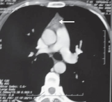 Figura 3. Tomografía computada de tórax mostrando la presencia de timo.