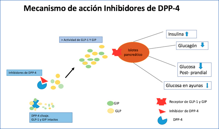 Figura 3: Mecanismo de acción de los Inhibidores de DPP-4.