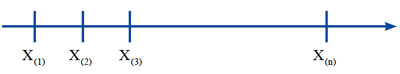 Con esta notación, si se cuenta con n datos, el menor valor observado, que se llama el mínimo, será denotado por X(1) y el mayor valor observado, que se llama máximo, será denotado por X(n). La muestra se puede visualizar sobre un eje ordenado: