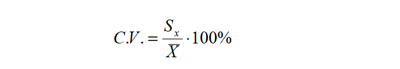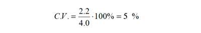 Solamente para obtener una medida más interpretable del grado de heterogeneidad, es útil definir el Coeficiente de Variabilidad que se entrega como un valor porcentual y se define como el cuociente entre la desviación estándar y el promedio multiplicado por 100 en símbolos: