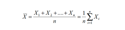 • La Media aritmética o Promedio aritmético. Es el estadígrafo de tendencia central más conocido, usado y abusado. Para todos es sabido que dada una colección de datos X1, X2, ...., Xn, el promedio se define como la suma de los datos dividida por la cantidad de datos, y se denota por; en símbolos el promedio es: