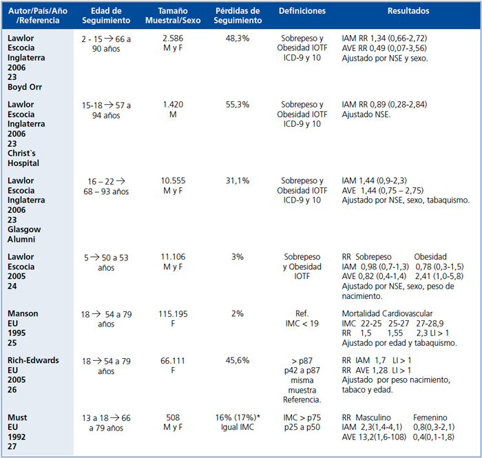 Las discrepancias señaladas nos motivaron a realizar una revisión sistemática de estudios de cohorte que permitieran determinar: 1) Si la obesidad infantil constituye un factor de riesgo para ser obeso en la edad adulta, y 2) Si la obesidad infantil constituye un factor de riesgo para mortalidad general y cardiovascular en la vida adulta.