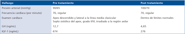 No sólo existe evidencia de incremento de la función cardíaca, sino que se ha visto mejoría de los riesgos cardiovasculares con control bioquímico parcial de Acromegalia; tales como Presión Arterial, Tolerancia a la Glucosa, Resistencia a la Insulina, Perfil Lipídico y en Índices de Coagulación e Inflamación, como Fibrinógeno, PAI-1 y t-PA17.
