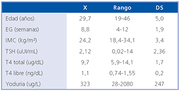 Tabla 1. Características generales de la población de embarazadas (n = 100) y su función tiroidea