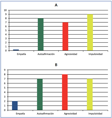Figura 2. Indicadores emocionales test de los colores: A) pre-intervención;