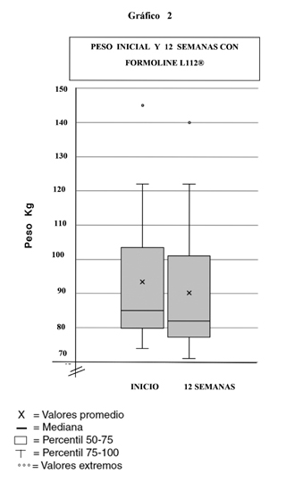 Tabla 1. Parámetros antropométricos y de laboratorio al inicio y posterior a 12 semanas de tratamiento con Formoline L112®.