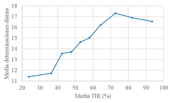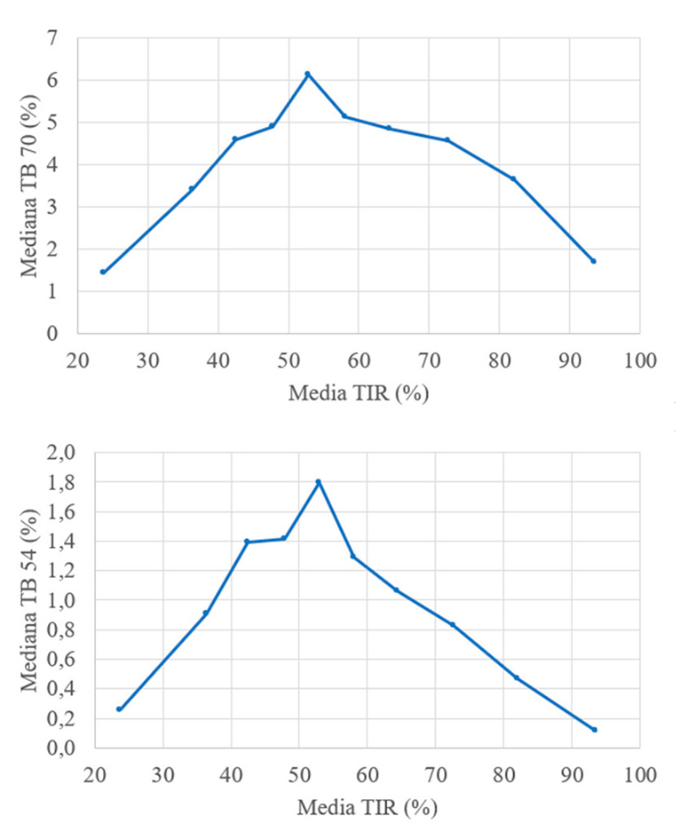 TIR 1-10: tiempo en rango (time in range), dividido por deciles.