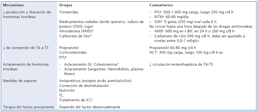 Tabla 2. Tratamiento de la tormenta tiroidea