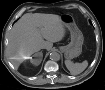 En la actualidad su uso es excepcional y su indicación esta reservada para casos en que las técnicas no invasivas no son diagnosticas y en casos en que se sospecha un linfoma y es necesario tipificarlo. En el lado derecho si la masa es pequeña se prefiere el abordaje transhepático (Figura 16 a) y en el lado izquierdo la vía dorsal posterior (Figura 16 b).