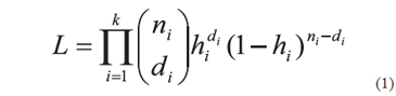 pues se asume que en cada intervalo de tiempo los eventos siguen una distribución binomial con n = ni y p = hi. Para construir esta función se ha asumido que la información contenida en las pérdidas es que, para cada una de ellas, el evento ocurre en un tiempo mayor que el tiempo en que se observa la pérdida. Maximizando esta función se encuentra que el estimador de hi en cada intervalo es: