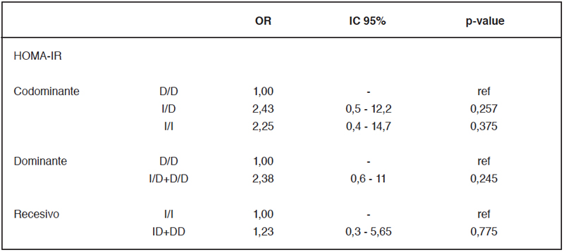 Tabla 4. Análisis univariado según modelos de herencia para HOMA-IR.