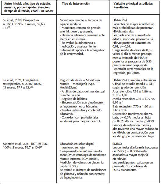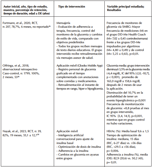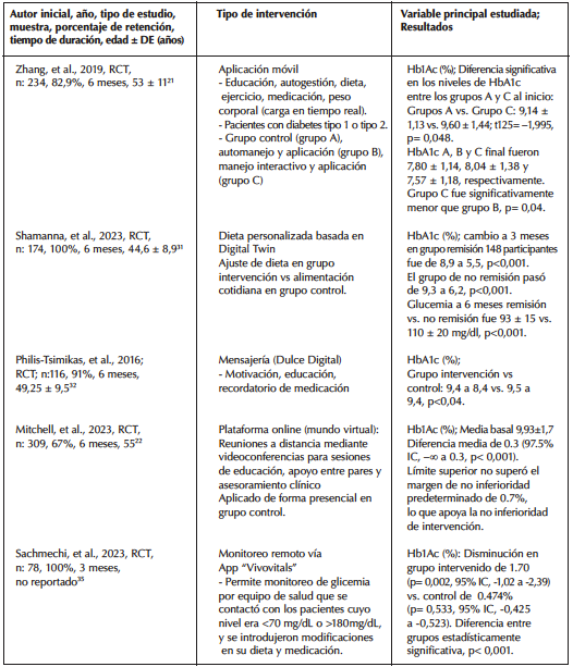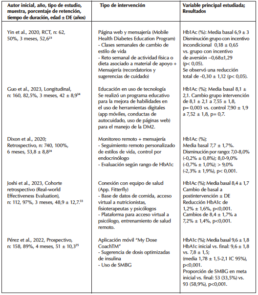 Tabla 1. Estudios originales sobre tecnología digital en diabetes mellitus tipo 2.