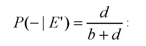 Esto es: a + c es el número total de enfermos en la población; b+d es el número total de sanos en la población; a+b es el número de sujetos cuyo examen es positivo y c+d el número de sujetos cuyo examen es negativo. Los verdaderos positivos, (enfermos y con examen positivo) son “a” y los verdaderos negativos (sanos y con examen negativo) son “d”; en forma análoga los falsos positivos (sanos con examen positivo) son “b” y los falsos negativos (enfermos con examen negativo) son “c”. Así es posible definir las siguientes probabilidades de “buena o correcta clasificación”: