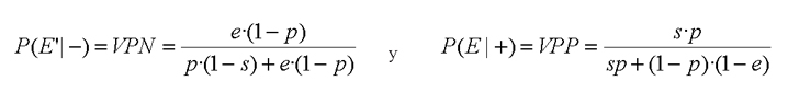 Tanto el VPP como el VPN no son características del examen sino de la población en la cual se aplica el mismo, pues dependen de la prevalencia de la enfermedad que se desea estudiar. En efecto, dada una sensibilidad “s”, una especificidad “e” y una prevalencia “p” y recordando que