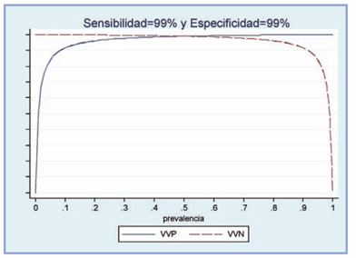 La Figura 4, muestra el VPP y el VPN para sensibilidad y especificidad casi perfectas.