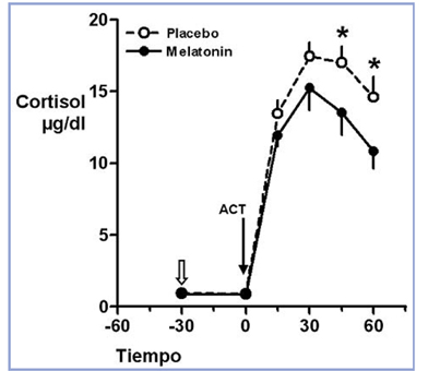*Diferente a ACTH con melatonina (P < 0,01, análisis de modelos mixtos).