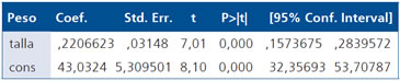 peso = 43,03 + 0,22 • talla