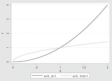 1. Y = α • Xb, modelo de potencias, cuya forma se muestra a continuación: