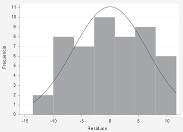 Un histograma de estos residuos se muestra en la siguiente figura: