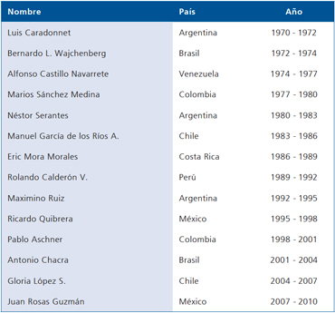 Tabla 2. Presidentes de la Asociación Latinoamericana de Diabetes