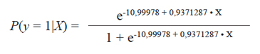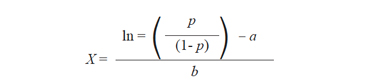 Si se ha escogido como punto de corte 0.7654671 el punto de corte para la variable original, X, se obtiene despejando su valor de la ecuación: