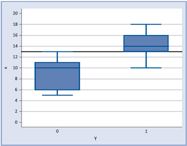 Observemos el siguiente ejemplo: Supongamos que la variable X discrimina dos poblaciones, disponemos de 10 valores para la población "1" y 10 valores para la población "0", los datos son los siguientes:
